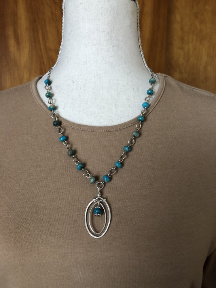 Handmade jewelry Jasper and wire December 21, 2019 janicesphar7041 Serpentine jasper stone beads with handmade sterling silver wire links and pendant. Share this: Click to share on X (Opens in new window) X Click to share on Facebook (Opens in new window) Facebook Click to share on Pinterest (Opens in new window) Pinterest Like Loading... Related
