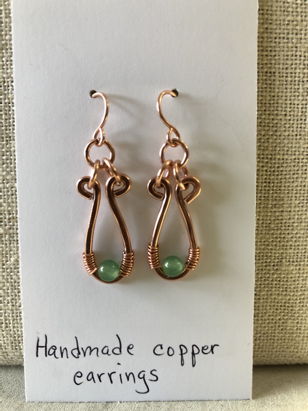 Handmade jewelry Handmade copper and aventurine earrings February 16, 2020 janicesphar7041 Share this: Click to share on X (Opens in new window) X Click to share on Facebook (Opens in new window) Facebook Click to share on Pinterest (Opens in new window) Pinterest Like Loading... Related