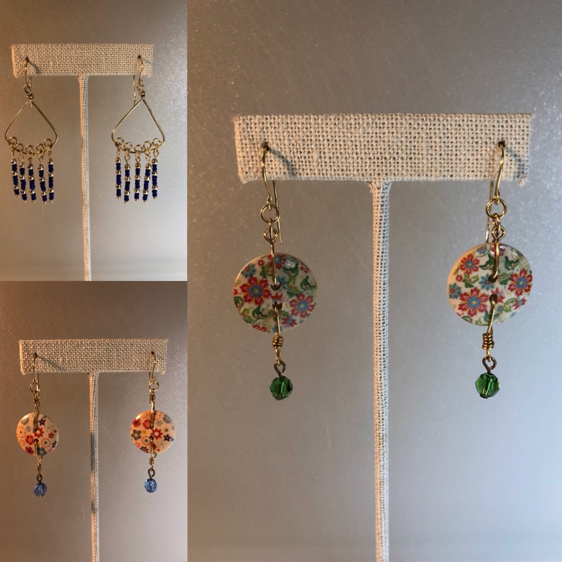 Handmade jewelry New earrings for spring March 8, 2020 janicesphar7041 Handmade with brass, buttons and glass and crystal beads. Share this: Click to share on X (Opens in new window) X Click to share on Facebook (Opens in new window) Facebook Click to share on Pinterest (Opens in new window) Pinterest Like Loading... Related